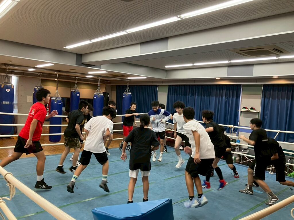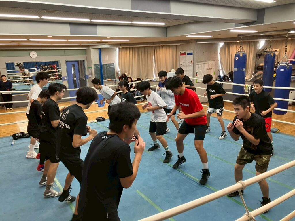 高校生に混ざり、スパーリングやマスボクシングをしました。